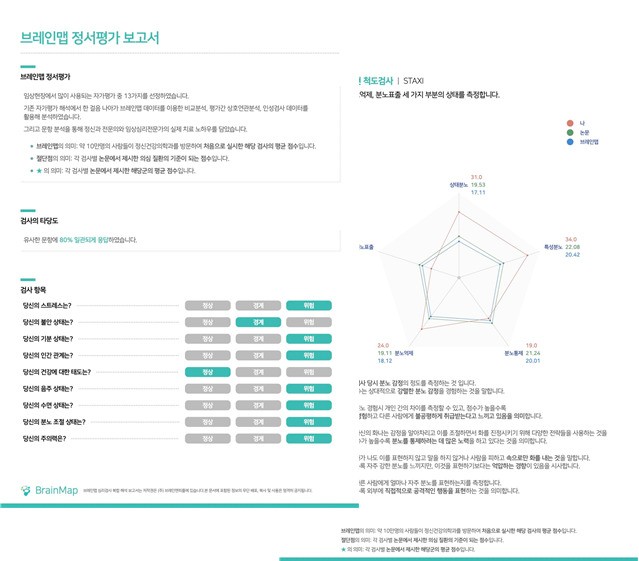 현재 심리 상태와 뇌의 활성 상태를 평가하는 다양한 검사 프로그램이 준비되어 있습니다.